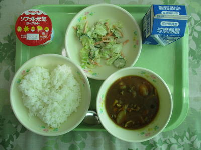 今日のポイントは、ポークカレーです。相良村の給食は、3種類のカレールー