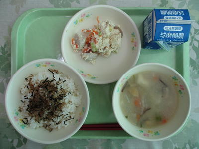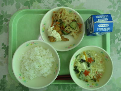 今日は、コールスローサラダの野菜が苦手な子が少しいて苦戦