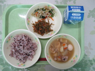 今日は、和食献立でしたが、きんぴらはごはんと一緒に食べ、おでんも給食