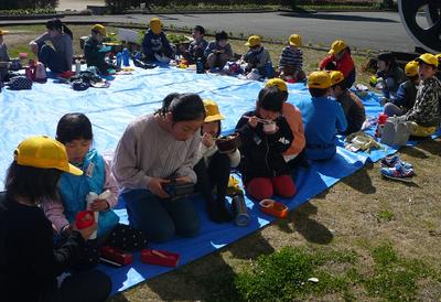 みんな、ニコニコ笑顔で食べていました。保護者の皆様、お弁当作りについてのアドバイス
