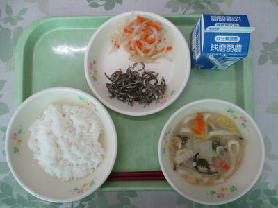 今日は、はじめて味噌にこみうどんを作りました。給食のうどんは、