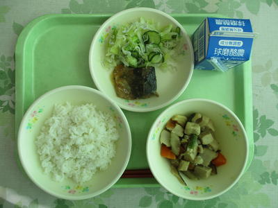 今日のポイントはさばのごまみそ煮です。給食で使用している魚は