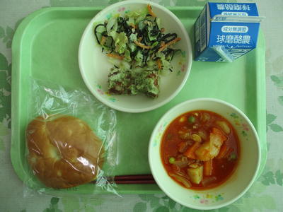チリソースの辛さが強く、低学年の子どもたちはから~いという顔を