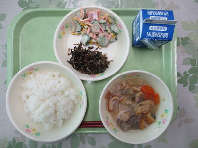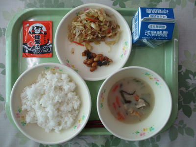 今日のポイントは、雑煮です。給食の雑煮は昆布でしっかりだしをとり