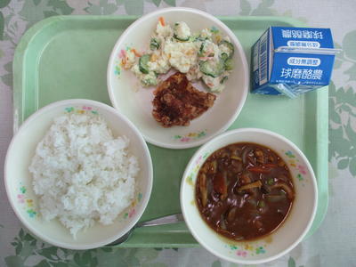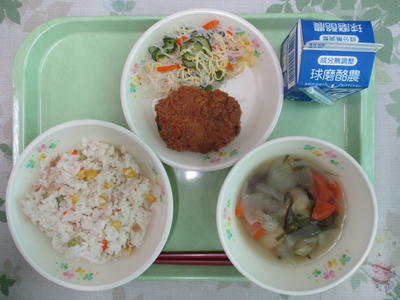 今日は、コールスローサラダの野菜が苦手な子が少しいて苦戦