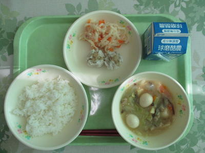 今日のポイントはヨーグルトです。今月は、かぜ予防について養護教諭の先生と