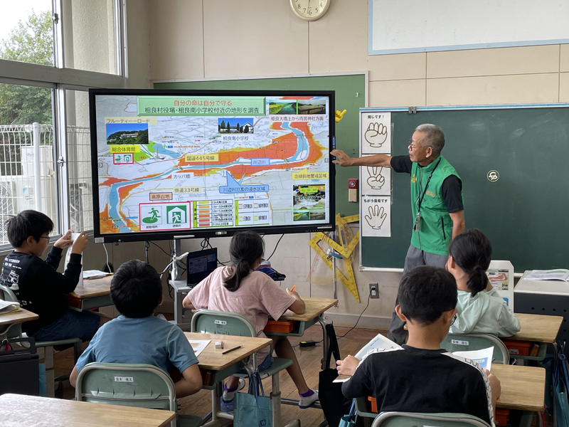森林保全課の松下さんや防災士の方をお招きして、防災の対策や災害がなぜ起こるのかなどを説明してもらいました。