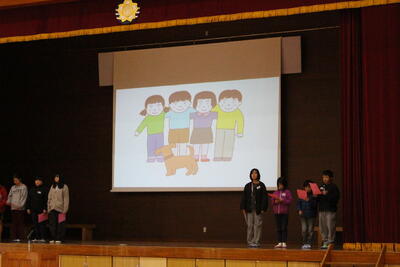 12月18日に人権集会がありました。各学年がそれぞれの教材をもとに学んだこと、考えたことを発表しました。