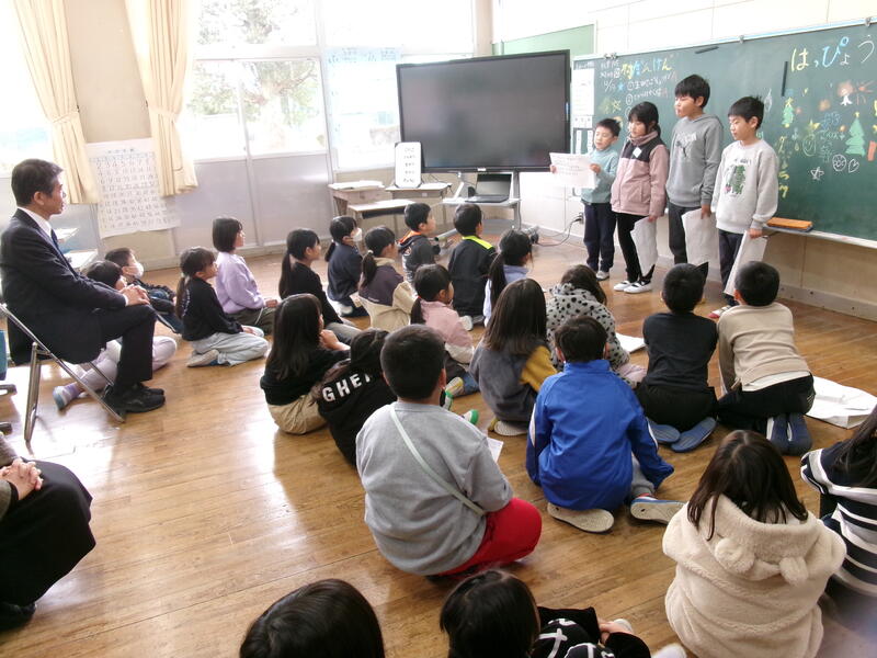 2年生は国語科の「スイミー」の劇と生活科の「村探検」で学んだことをクイズで発表しました。かわいらしい劇と2年生の視点で調べたクイズがとても盛り上がっていました。相良村のよさや楽しいところをたくさん発見した発表でした。