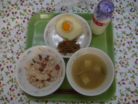 赤飯 つぼん汁 なます 塩さば 牛乳