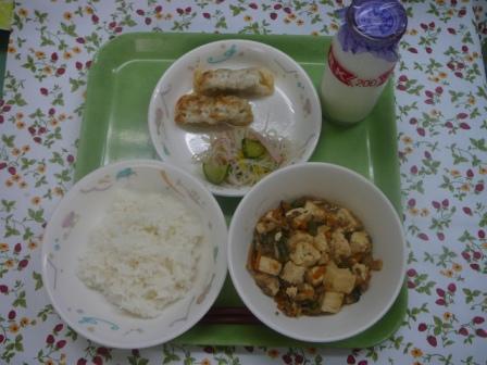 ごはん マーボー豆腐 バンサンスー ぎょうざ 牛乳