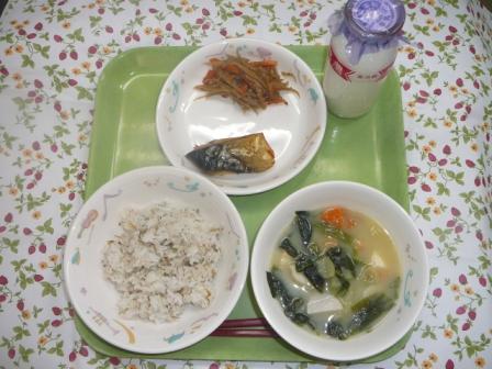 今日は、雑穀ごはんや豚汁に入っている根菜類など少しかみごたえのある献立となって
