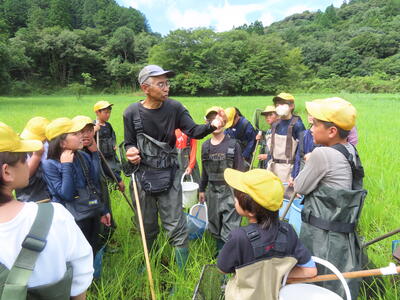 子供たちからは、「先生メダカ見つけました~」「この生き物の名前なんですか?」など、たくさんの声が聞かれました。