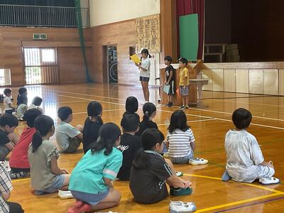 2学期の始業式では、新しく来られたALTのホー先生の自己紹介や2・4・6年生の学年代表による発表、校長先生のお話などがありました。