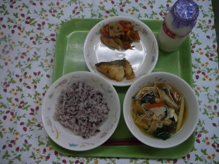 きびごはん さつま汁 もやしの中華あえ 大豆の五目煮 牛乳