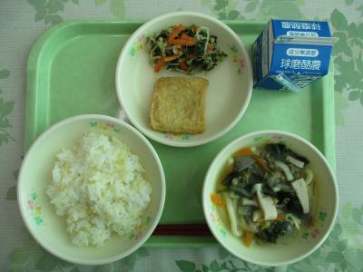 ・ほうれん草とちりめんの和え物 ・かぼちゃフライ ・牛乳