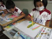 横から見た島、上から見た島など、さまざまな「えのぐじま」を描くことができました。