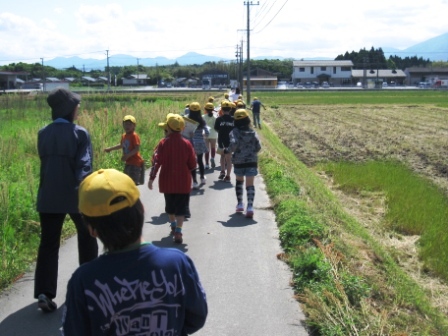 4月17(金)に、お見知り遠足がありました。まず、学校で歓迎集会を行いました。貨物列車や猛獣狩り、お誕生日仲間などのゲームをし、とても楽しく交流しました。その後、運動公園に移動して、分団ごとに遊びました。お昼ごはんは、登校班ごとに食べ、和やかな雰囲気で過ごすことができました。お見知り遠足を通して、1年生だけではなく、他の学年のお友達とも絆を深めることができました。