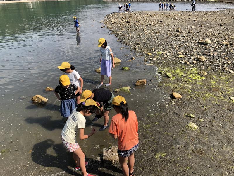 ペーロン船の後は、磯遊びをしました。今回は膝までしか入れませんでしたが、生き物を探したり貝殻を拾ったりして楽しみました。