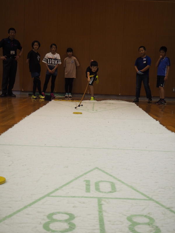 二日目の午前中はニュースポーツをします。シャッフルボードとガガというスポーツをします。みんなワクワクドキドキしています!
