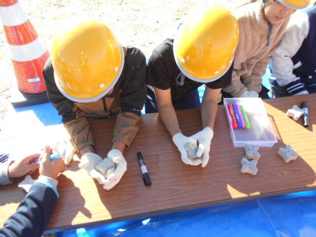 役場や工事をしている方々から説明を受けたり、橋の部品に絵を描いたり、クレーン車が橋を持ち上げたりしている様子を見ることができました。貴重な経験をさせていただきました。