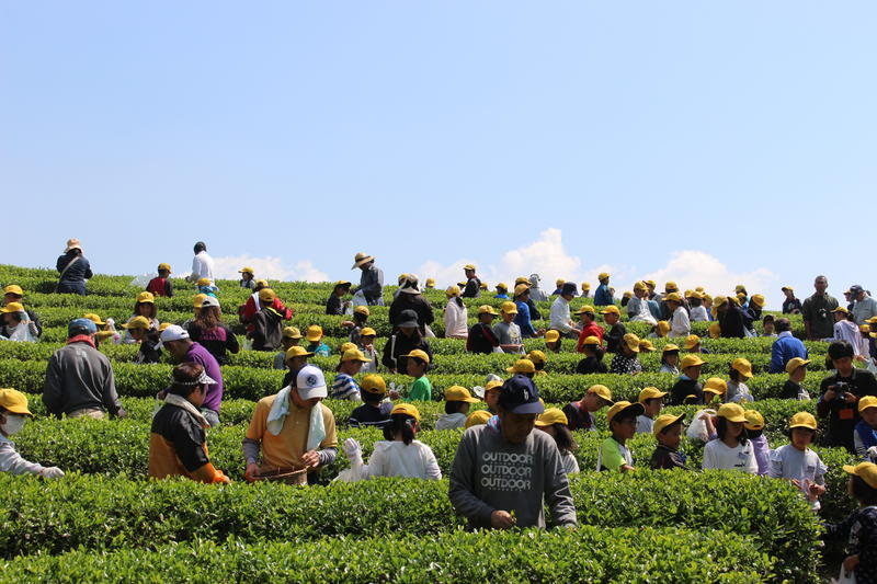 ゴールデンウィークが終わった一番最初の学習は「お茶摘み体験」でした。とても天気が良い中で、茶湯里の隣の茶畑にて、お茶を摘みました。今年はみんなで55キロを収穫し、たくさん摘むことができました。