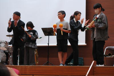 11月5日(火)の3,4時間目は、芸術鑑賞(ジャズ音楽)がありました。音楽に合わせて手拍子をしたり、打楽器の体験をしたりして、ジャズに親しみました。子供たちからは、「いろいろな楽器について知ることができて、よい経験になりました。」「知っている曲がたくさんあったので、リズムにのって楽しく聴けました。」などの感想がありました。芸術の秋!プロの演奏者の方々の演奏を聴くことができて、心が豊かになりました。
