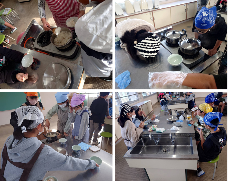 そして最後は、自分たちで炊いたご飯をおいしく食べていました。直火で炊いたご飯のおいしさを味わうことができたようです。