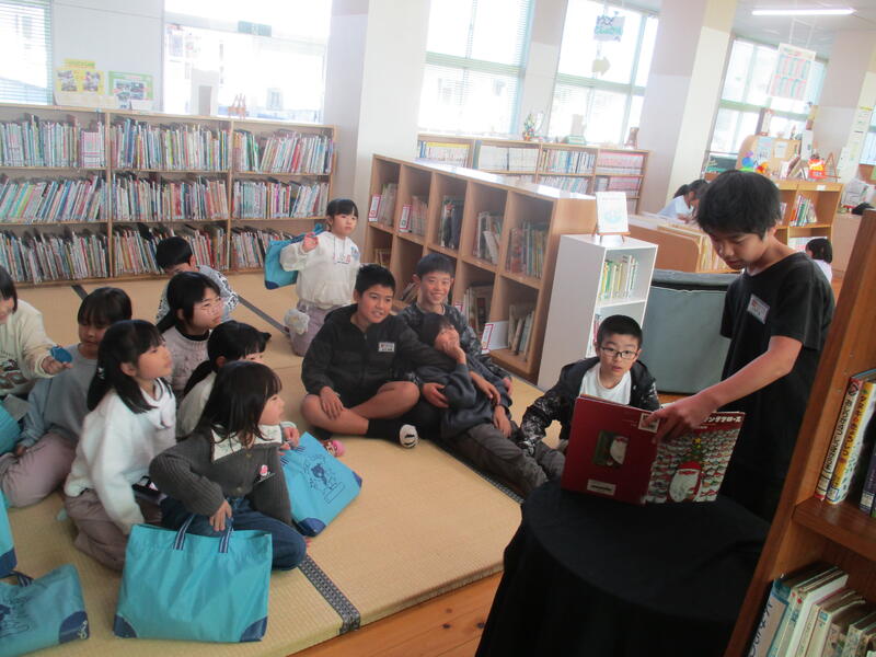 今週一週間は昼休みに図書委員によるクリスマスや冬にちなんだ本の読み聞かせがありました。