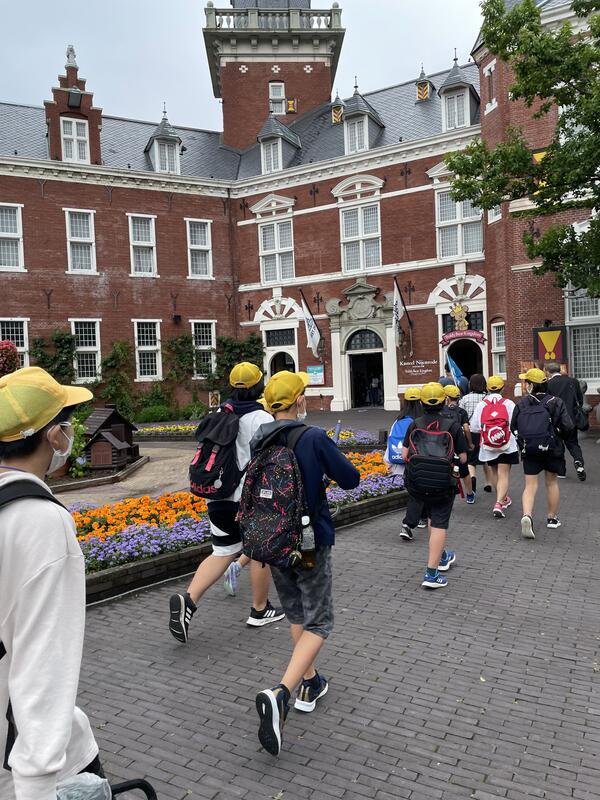 ハウステンボスについて、それぞれの活動班で行動してます!