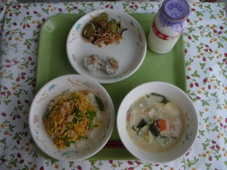 今日は、子ども達の好きな献立ばかりでした。洋風の献立ですが、野菜もたっぷり