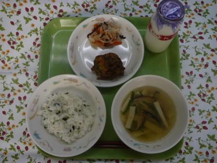 わかめごはん うどん 新茶のかきあげ 変わりなます 牛乳