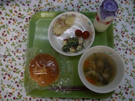 パインパン 肉団子のスープ ポパイサラダ ジャーマンポテト ミニトマト 牛乳