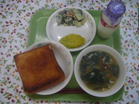 シナモントースト コーンスープ ひじきサラダ オムレツ 牛乳
