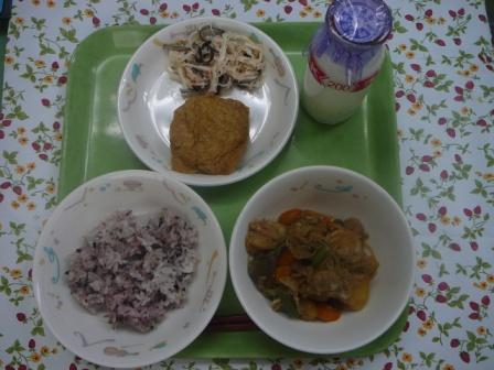 雑穀ごはん 肉じゃが 大根サラダ 信田煮 牛乳