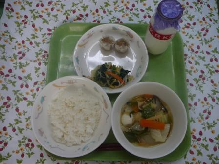 今日の給食は中華料理にまとめました。子ども達はぎょうざを食べると元気がでると言って