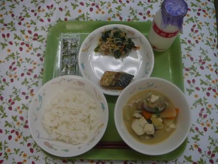 ごはん みそけんちん汁 ほうれん草のおかかあえ 塩さば 一食味つけのり 牛乳