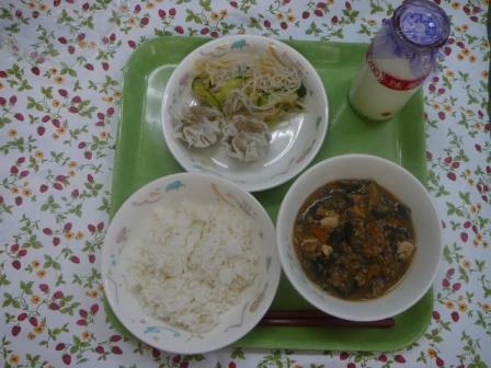 麦ごはん マーボー茄子 バンサンスー シューマイ 牛乳