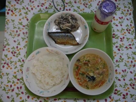 ごはん いきなりだんご汁 れんこんサラダ 焼きししゃも 味つけのり 牛乳