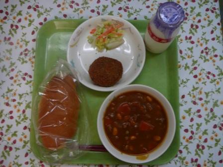 ミルクパン ポークビーンズ コールスローサラダ 手作りコロッケ 牛乳