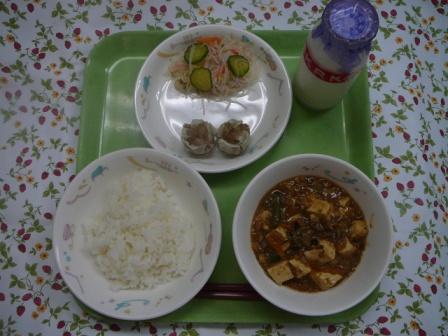 ごはん マーボー豆腐 春雨のすのもの シューマイ 牛乳