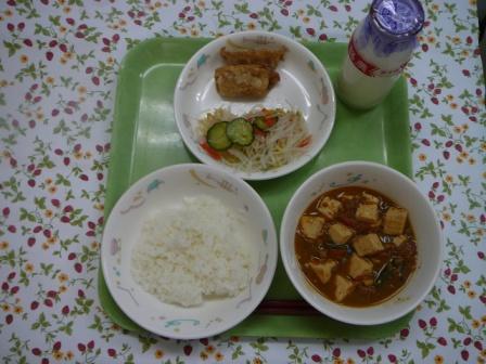 ごはん マーボー豆腐 バンサンスー ギョウザ 牛乳