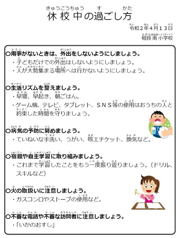 【重要:お知らせ・お願い】臨時休業(休校)について(4月13日)