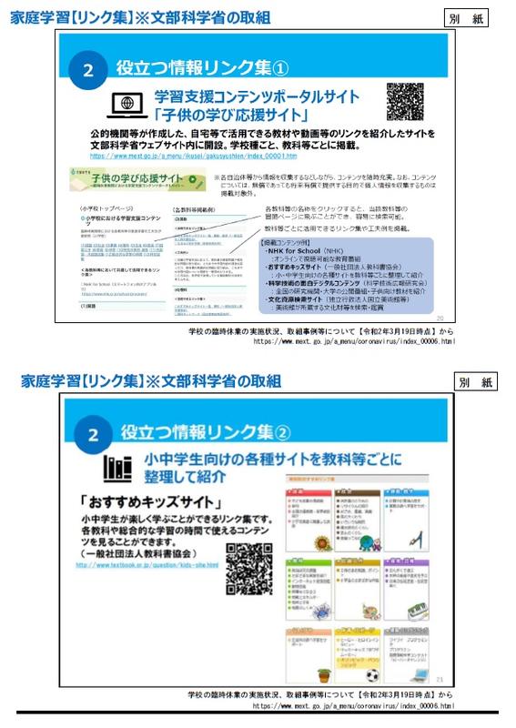 さて、熊本県におきましては、以下のとおり家庭学習の支援につながるサイト等を紹介する資料が作成されましたのでお知らせします。