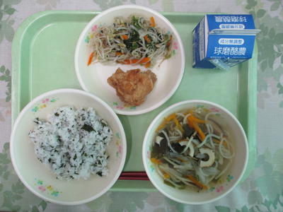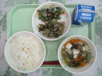 今日は、あおさのりを使ってのりのすまし汁を作りました。いろいろな献立が給食にはありますが、今学期当初と比べて随分食べられる量が増してきておかわりをする子もいます。また配膳もこぼさないようにと一生懸命運んでいます。給食も1学期は明日までとなります。明日も調理場一同衛生面に気をつけて調理を行いたいと思います。