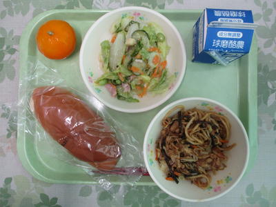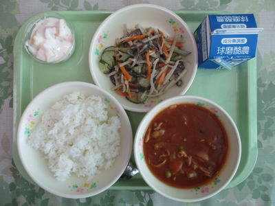 今日のフルーツヨーグルトに使用しているヨーグルトは相良村にある球磨酪農組合で作られた「球磨の恵み」を使用しています。このヨーグルトはとろみがあり甘さもちょうどよく、給食ではみかん・もも・パインの缶詰と凍った角切りゼリーを加えて混ぜ合わせたものをだしています。子どもたちにも人気のあるデザートです。毎日飲用している牛乳も地域で生産されたものです。新鮮なものをいただけることに感謝していただきたいですね。