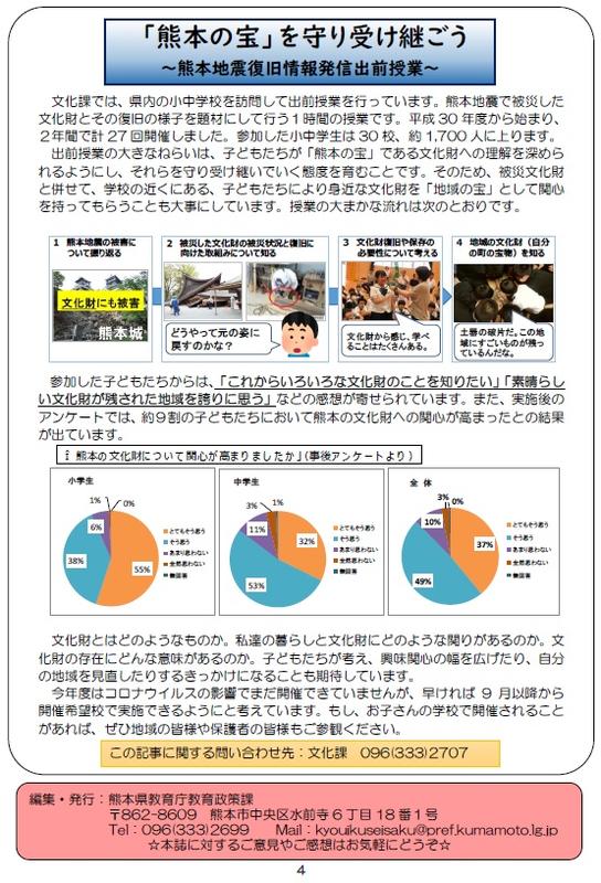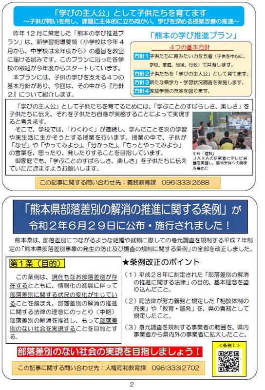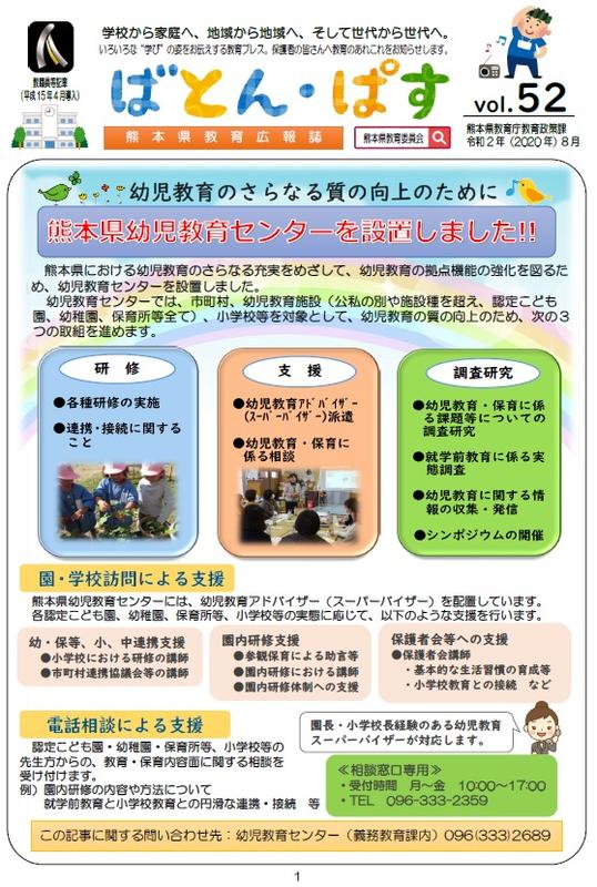 熊本県教育庁教育政策課から教育広報誌「ばとん・ぱす Vol.52」(令和2年8月)が発行されましたのでご紹介します。