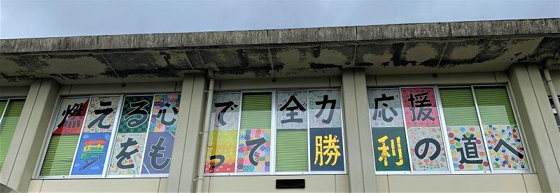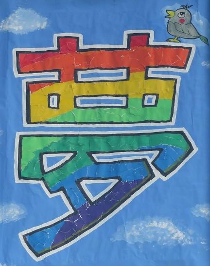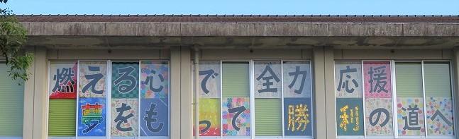 代表委員会で話し合い、決定したスローガンを、一文字一文字各学年で担当して広い用紙に作成しました。現在、図書室の窓に掲示していますので機会があれば是非ご覧ください。下校の際、出来上がったものを見た子だもたちから「きれい!」「あそこは私が書いたんだよ!」などの声が聞かれました。出来栄えの良さに子どもたちも満足している様子でした。運動会に向け、気運が高まってきたように思います。