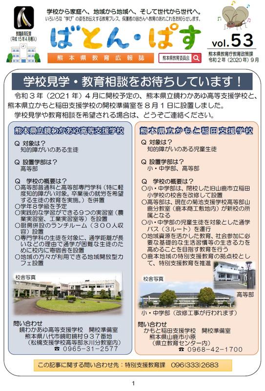 熊本県教育庁教育政策課から熊本県教育広報誌「ばとん・ぱす9月号」が発行されましたのでお知らせします。