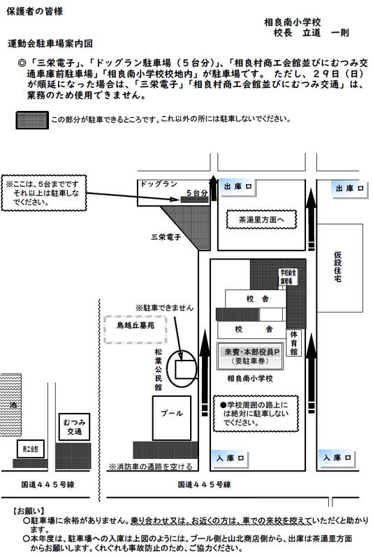 【お願い】運動会の日の保護者駐車場について